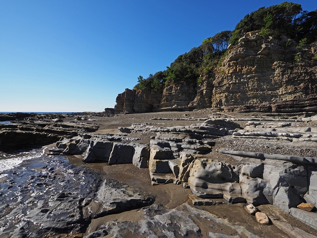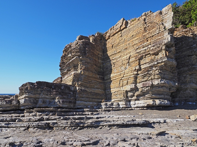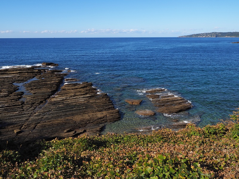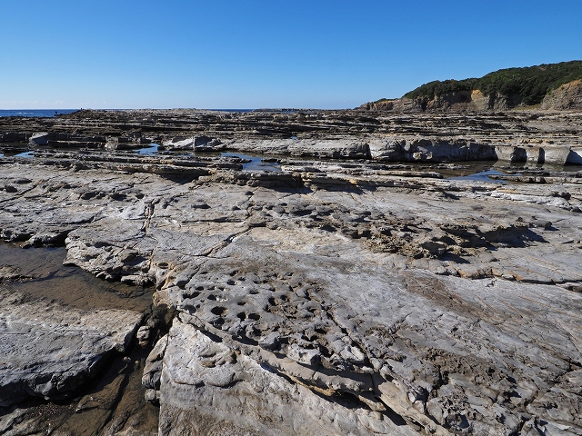 国道42号に出てそんなに進んでないところから海を見下ろす、洗濯板と言われるタイプの岩だね。洗濯板なんて今も売ってるけど昭和生まれのボクでも使ったこと
