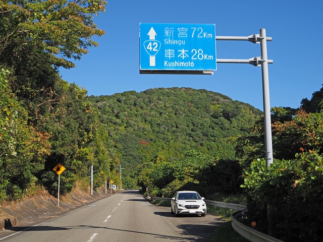繰り返そう、無料の紀勢道のおかげで並行する国道42号が快適。ずっと前から国道42号は白浜以南(以東?)は運転楽しいけどもうこの方面は