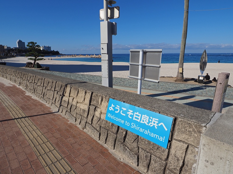 ここが円月島以上に「ザ・白浜」かも知れないな。白良浜の前の駐車場はシーズン外で無料なのは嬉しい、コインパーキング化してしまったら無料と言う運用は