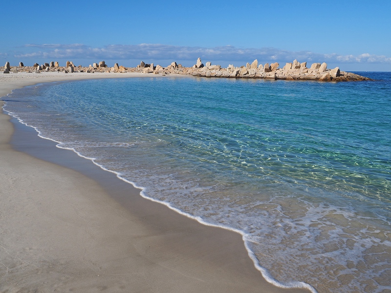 設置されたりするけどこの時はまだ無かった。設置されてるタイミング、冬に来ることが多いからない方が新鮮。これだけ白い砂を輸入して使ってるのでそりゃ海は青い。