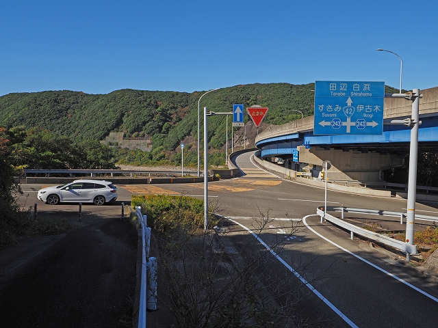 国道42号を串本に向けて走らせる。江住を過ぎて一気に交通量が増えた気がし...気じゃなくて本当に増えます。すさみ町の江住は紀勢道の現時点での終点