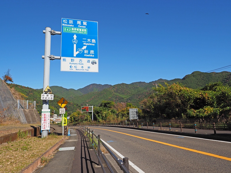 この写真、紀勢道のおかげでやはりクルマは少なく実に快適。特に盛り上がる国道42号のここらも交通量減という展開で魅力が増してるのホント趣味に合致した喜び。