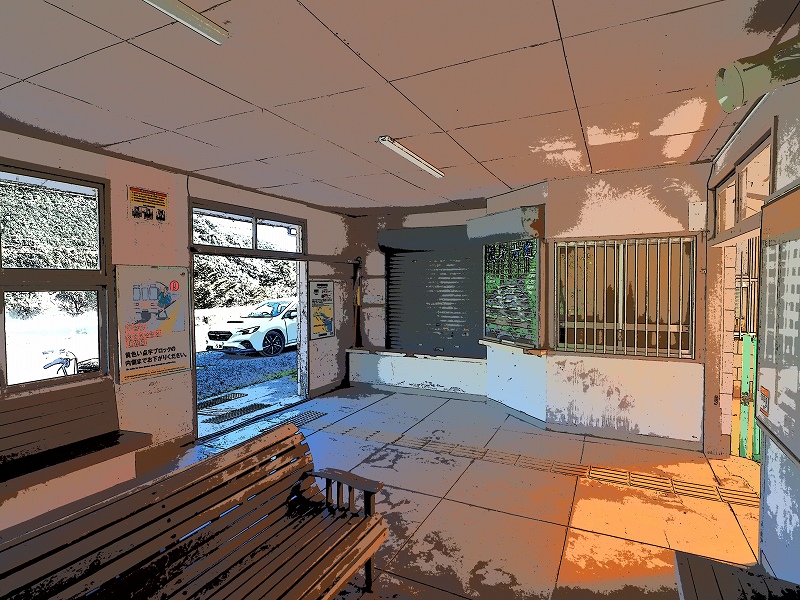 昔の人に見せてやりたいもんです。写真はリーニュクレールで絵画風に。無人駅化して塞がれた窓口はさみしいと思いつつ、有人駅であったら