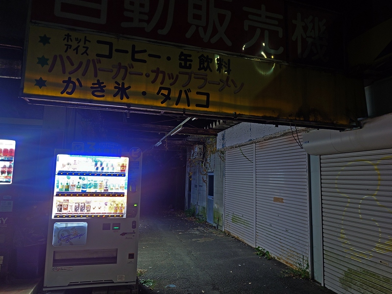 自販機でコーヒー買いに行こう...なかなかの雰囲気ですな。ゲームなら間違いなく敵が出てくる感じ。もう絶対このまま、どんなに朽ちようとも